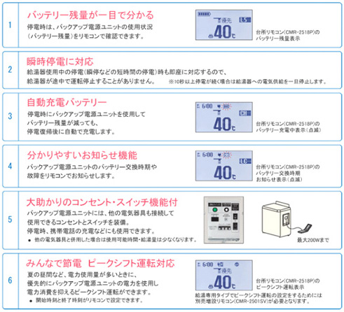 停電中でも4人家族が1日1回(3日間)給湯・シャワーを使用できる